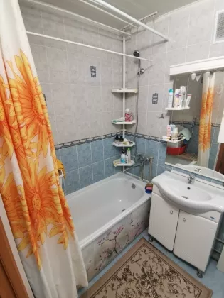 Сан узел объединён, просторный в отличном состоянии, узаконен официально, трубы все поменяны и не требуют внимания.