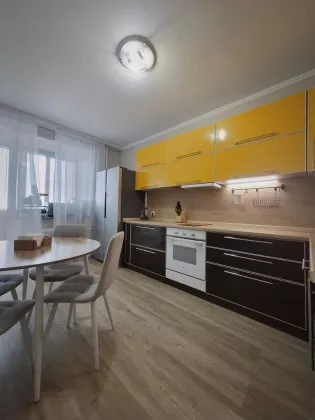 Кухня просторная слегка помещает всю семью и гостей.