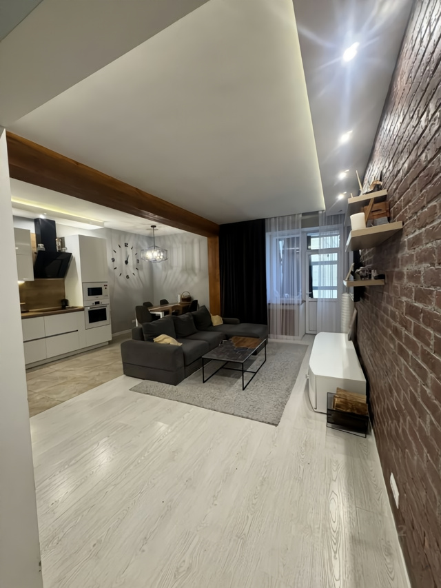 Продам просторную квартиру в центре города. Планировка: кухня-гостиная + 2 спальни. В квартире 2 санузла, гардеробная, кладовая, 2 просторные лоджии. Хороший современный ремонт. Торг реальным покупателям.